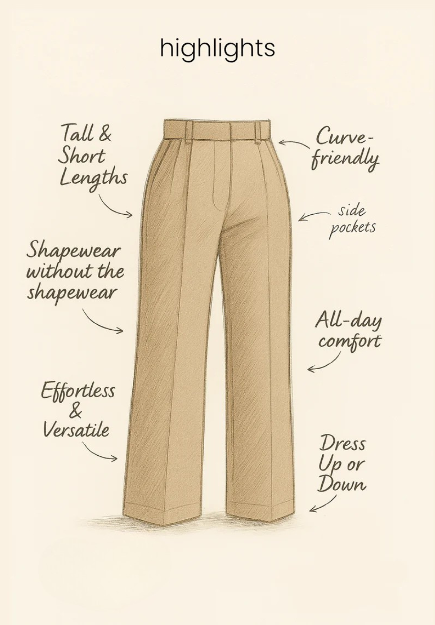 A timeless trouser with a modern, flattering fit. Designed to smooth, shape, and elevate your everyday look.