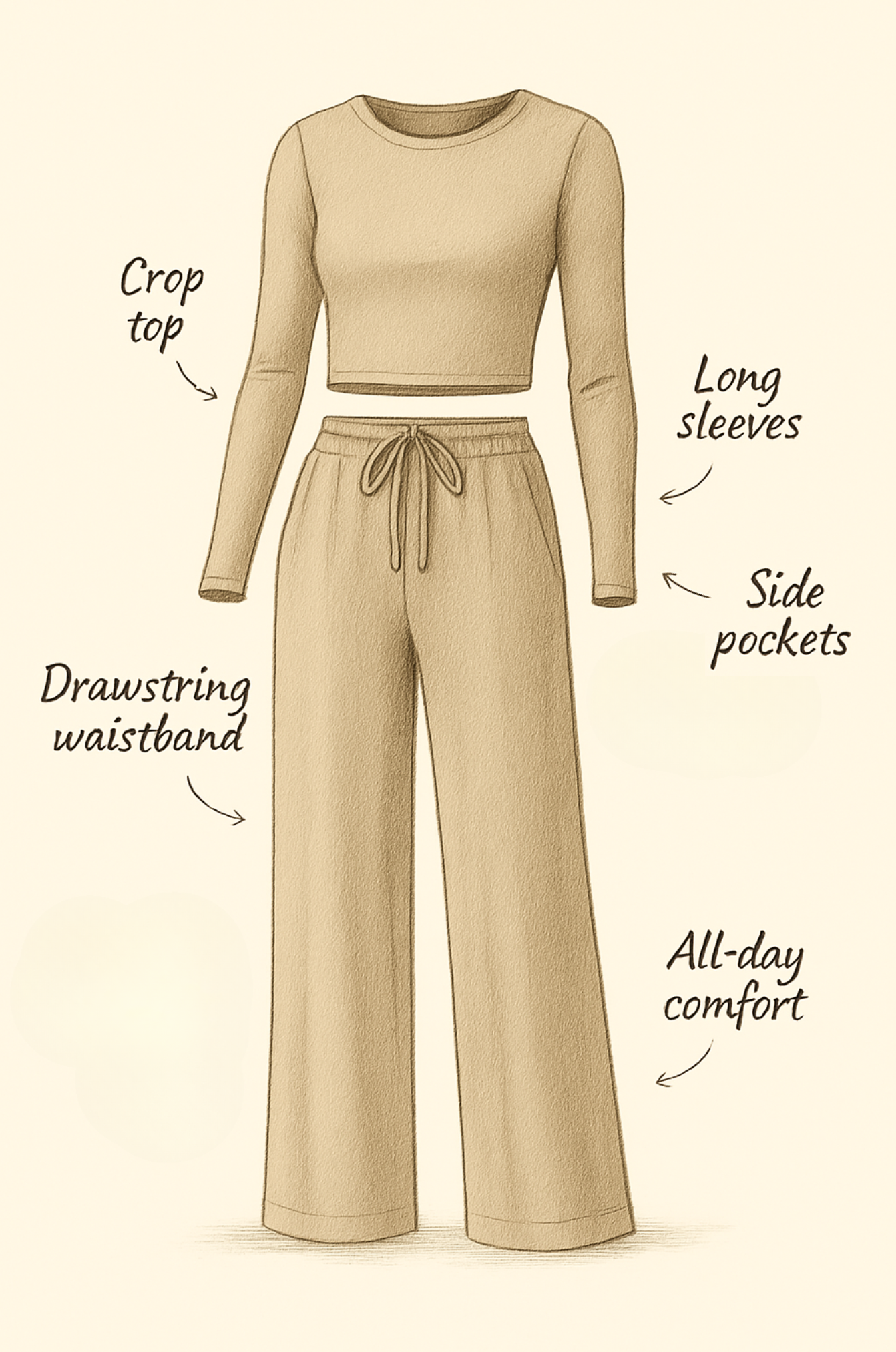 A lounge essential, reimagined. Crafted in high-quality cotton for that breathable, all-day softness, this matching set is made to move with you. A cropped top that’s as easy as it is flattering, paired with relaxed high-waist sweatpants designed for pure comfort. Cozy enough for lounging in, polished enough for stepping out — this is downtime, done right.